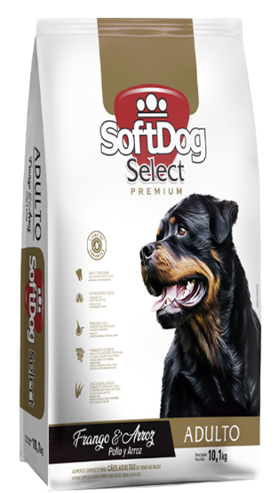 A Ração Soft Dog Select é um alimento premium para cães adultos, formulada para oferecer nutrição completa e balanceada com base em ingredientes selecionados, como proteínas, vitaminas e minerais.