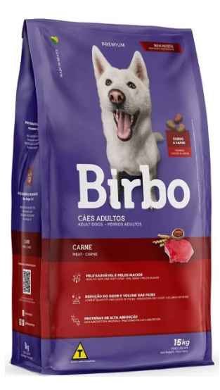 A Ração Birbo Carne é um alimento completo para cães adultos, rico em proteínas de alta absorção, vitaminas, minerais e ácidos graxos ômega 3 e 6, que promovem a saúde da pele e pelagem. Contém extrato de Yucca schidigera para reduzir o odor e volume das fezes.